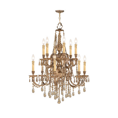 Olde World 12 Light Candle Chandelier Crystal Type: Majestic Wood Polished