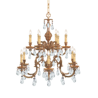 Olde World 12 Light Candle Chandelier Crystal Type: Majestic Wood Polished